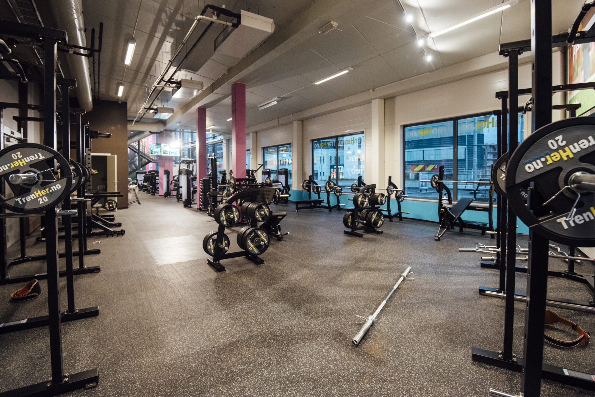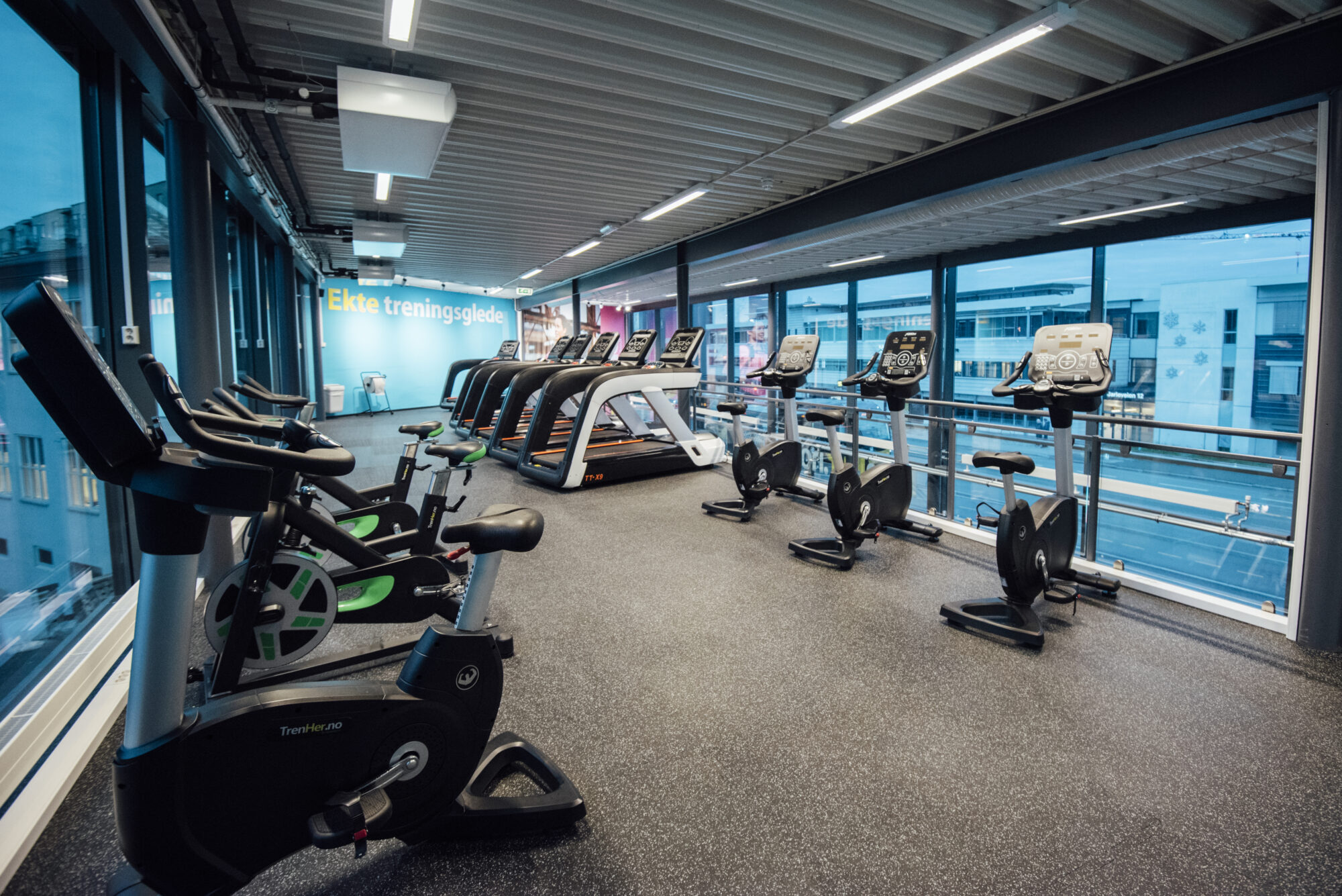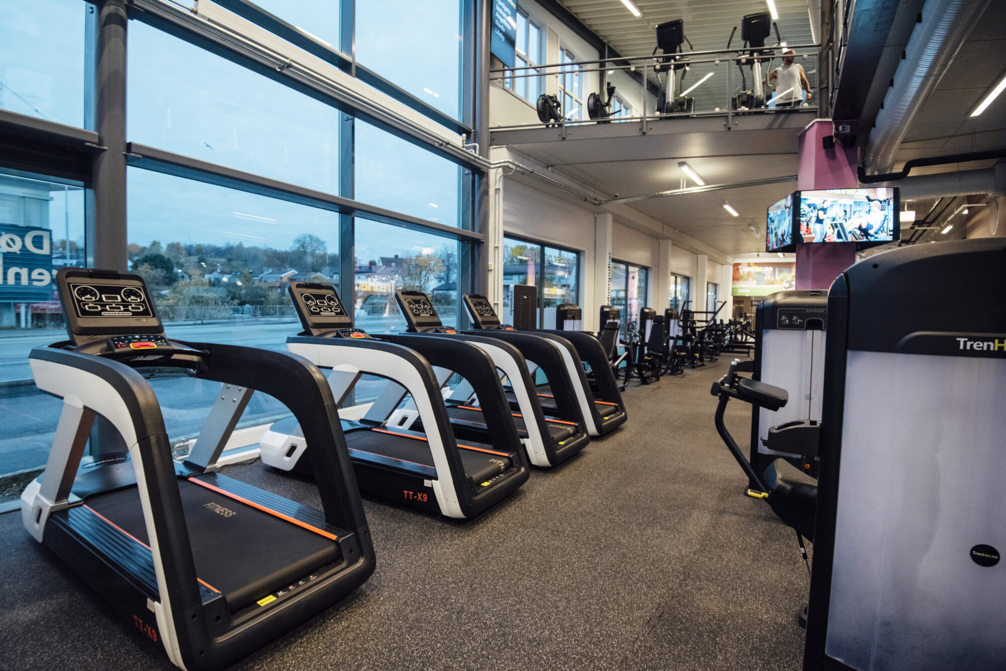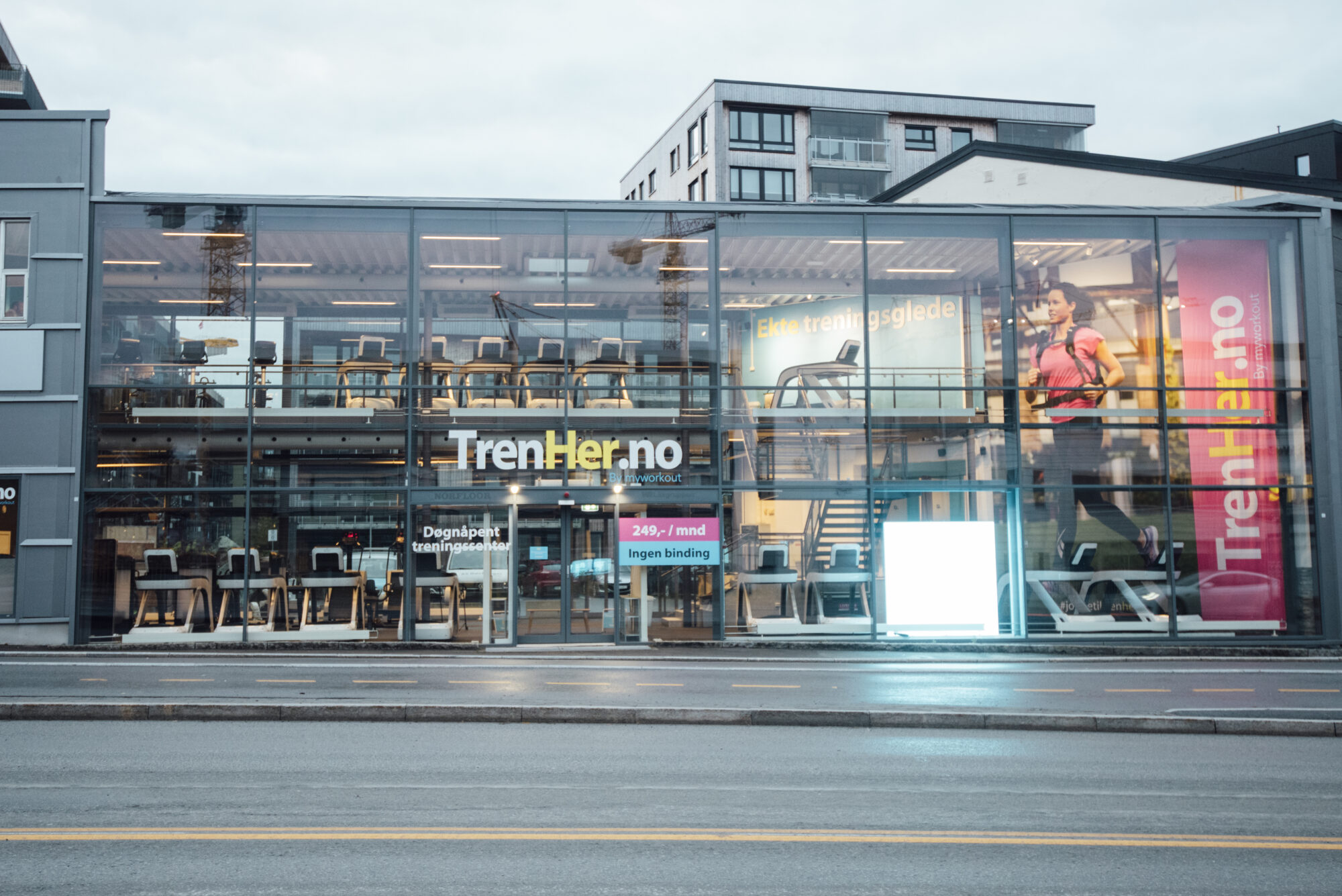 Inngang fra Jarleveien ved busstoppet, noen parkeringsplasser i bakgården. Du kan parkere på plasser merket TrenHer eller kundeparkering. Viktig at du legger inn ditt bilnummer på egen pad til høyre når du kommer inn. Den gir deg 120 min parkeringstid. Om du trenger mer kan du oppdatere på pad når tiden har gått ut. Det er mulig å legge inn telefonnummer for varsel etter utgått P-tid.